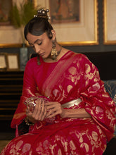 Red Trendy Cotton Silk Jacquard Saree with Zari Woven Border
