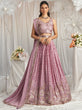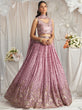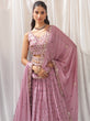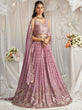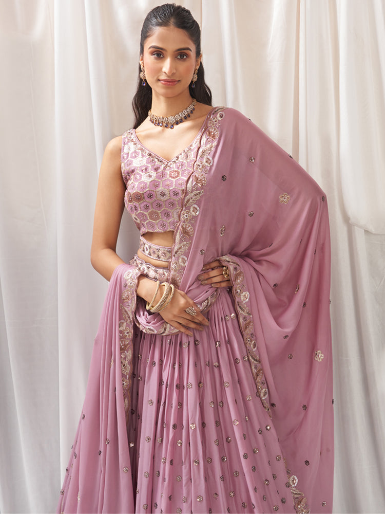 Crafted from high-quality Rose Gold georgette fabric, this full-flair lehenga features exquisite sequins and coding thread embroidery work