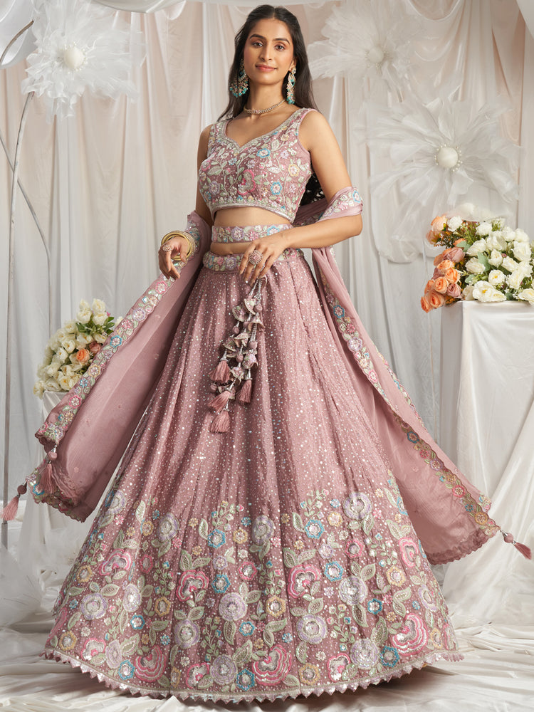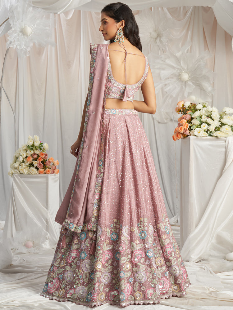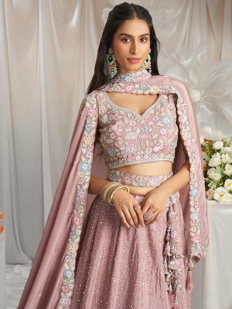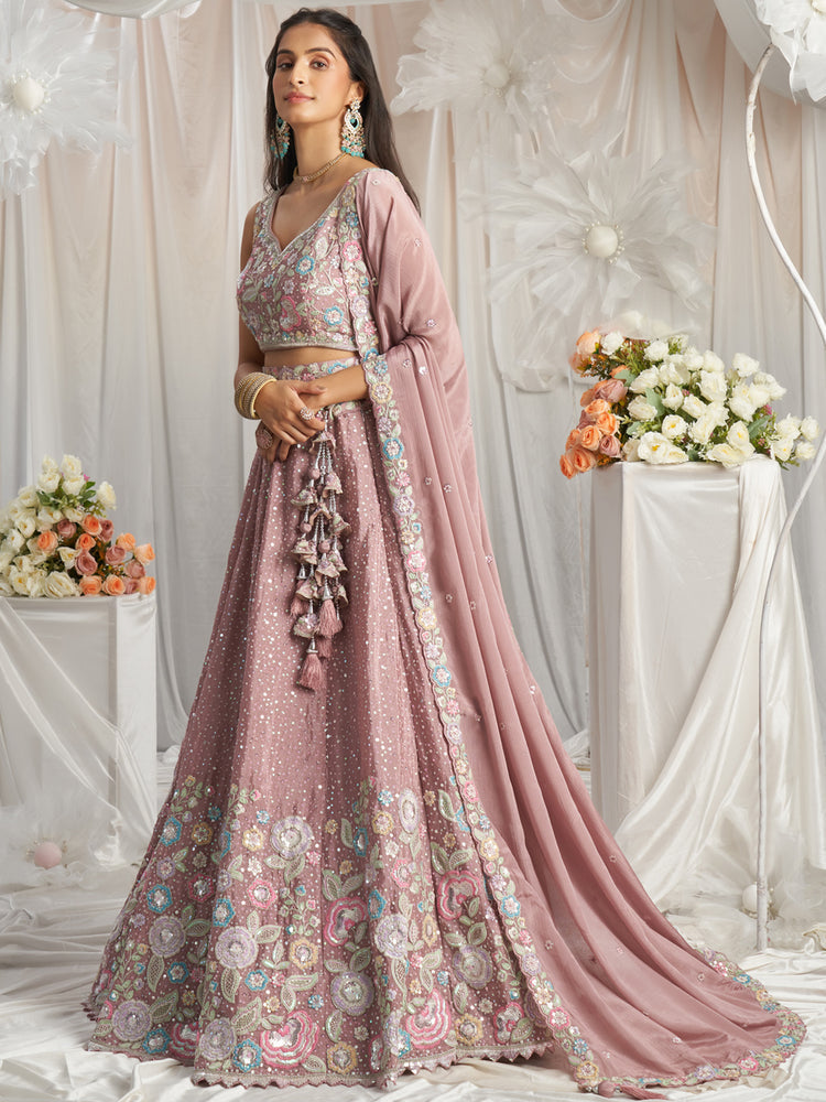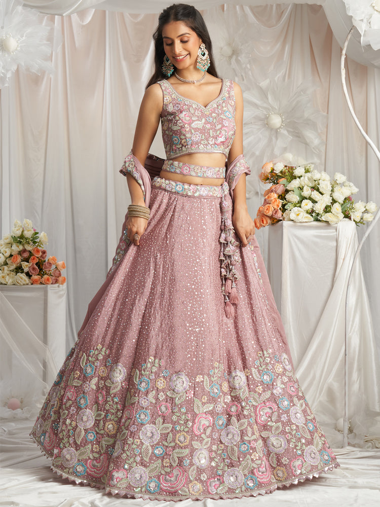 Rose Gold Pure Chiffon Sequins and thread embroidery Semi-Stitched Lehenga choli & Dupatta