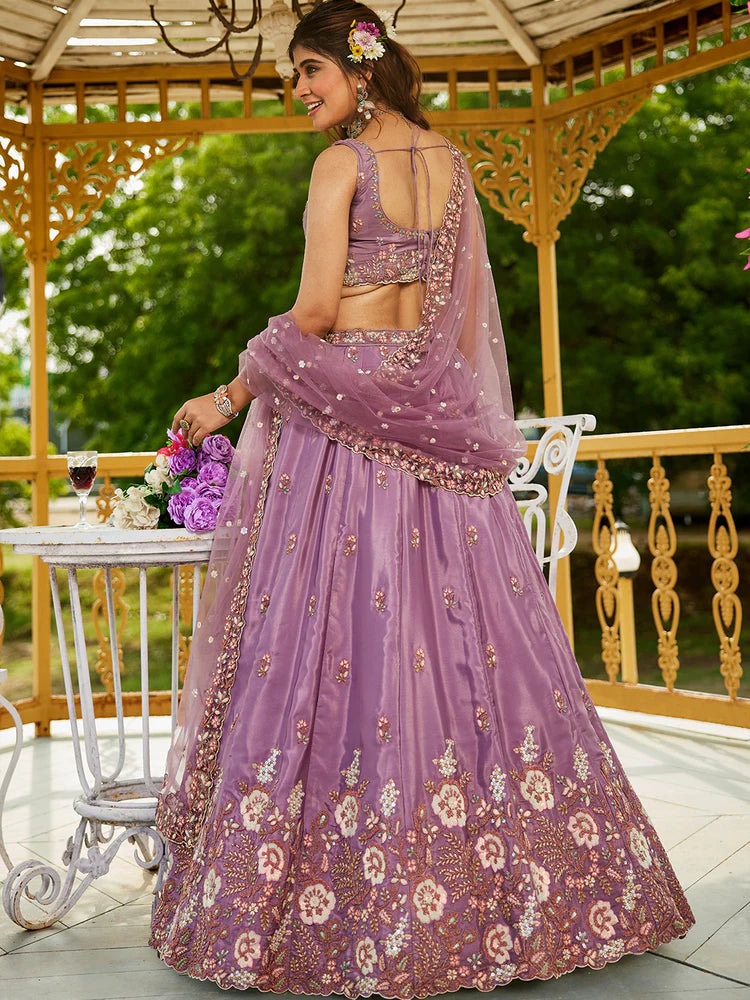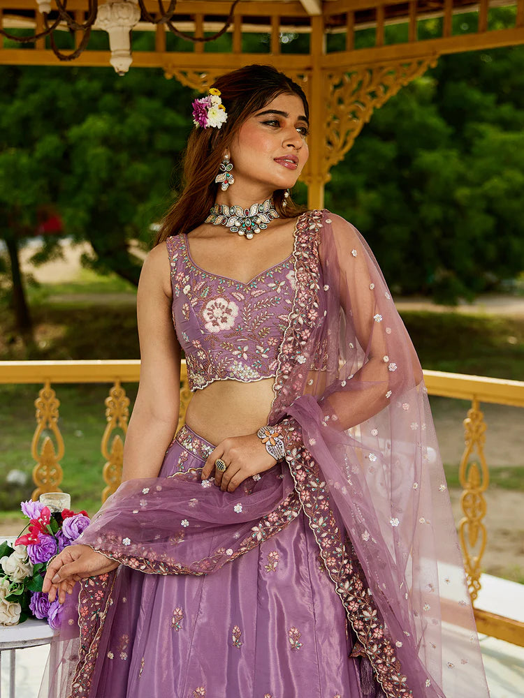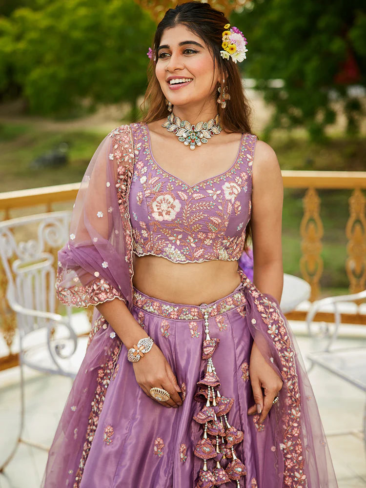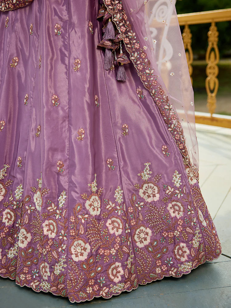 Rose Gold Satin Lehenga Choli Set with Net Dupatta Heavy Embroidered AIndian Outfit