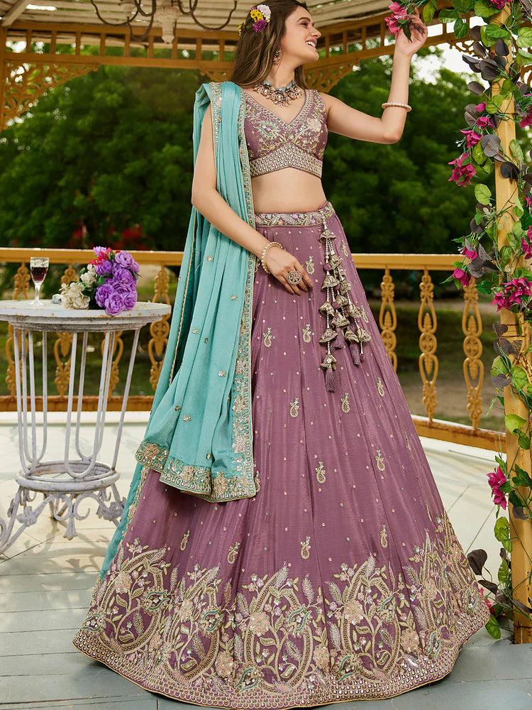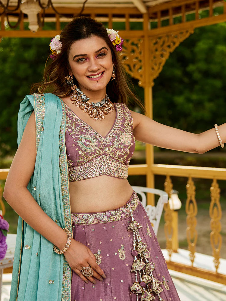 Rosegold Elegant Chiffon Sequin Embroidered Lehenga Choli Set with Ethnic Dupatta & Handmade Latkan