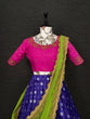 Crafted from high-quality Jacquard material, this royal blue color lehenga is designed with intricate weaving work, adding a touch of elegance and sophistication to the design. The lehenga comes with a micro cotton inner inside, making it comfortable to wear. The lehenga is paired with a pink Benglory silk material choli, featured with stone embroidery work on the neck and 3/4 sleeves, completing the traditional look.