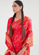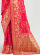 Evergreen, enduring, and ethereal! Spun in one of the choicest fabrics from India, this zari woven Banarasi silk saree will tuck at the strings of your heart. A perfect combo of elegance and appeal, this piece comes in ruby pink. Elaborate work with zari motifs on it reveals the expert craftsmanship involved behind the stage.