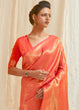 Salmon Orange & Golden Blend Kanjivaram Silk Saree