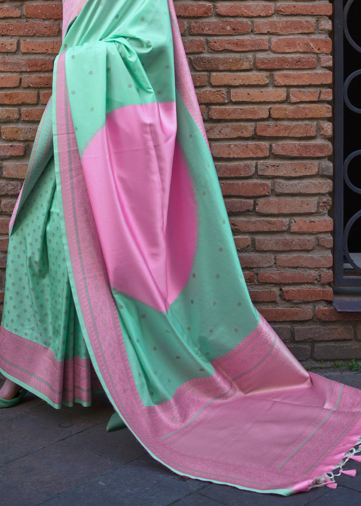 Sea Green Regal Banarasi Soft Silk Saree with Intricate Timeless Design & Blouse Piece
