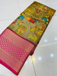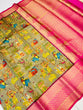 Elevate your ethnic wardrobe with the fusion of two rich traditions - the resplendent Kanjivaram silk and the intricate Kalamkari artistry. Our Kalamkari Printed Kanjivaram Saree is a masterful creation that seamlessly blends the opulence of South Indian silk with the rustic charm of Kalamkari prints.