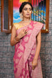 Skinny Dark Pink Linen Silk Saree With Capricious Blouse Piece