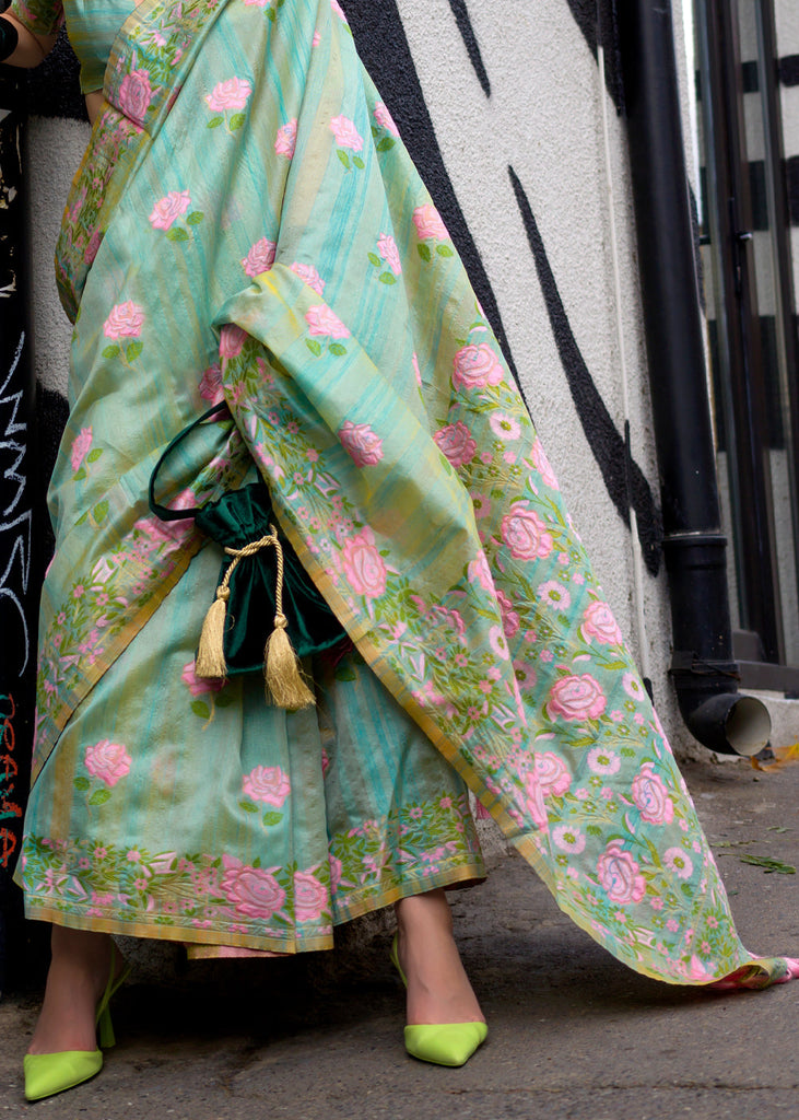 Sky Blue Banarasi Silk Saree with Zari Kashmiri Weaving & Unstitched Blouse