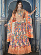 Sky Blue Color Digital Print With Sequins Embroidery Work Crushed Chinon Lehenga Choli