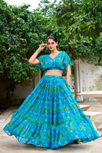 Sky Blue Effortless Elegance Chiffon Floral Print Co-ord Set