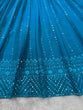 Sky Blue Elegant Fox Georgette Semi-Stitched Lehenga Set with Sequin Embroidery & Butterfly Net Dupatta