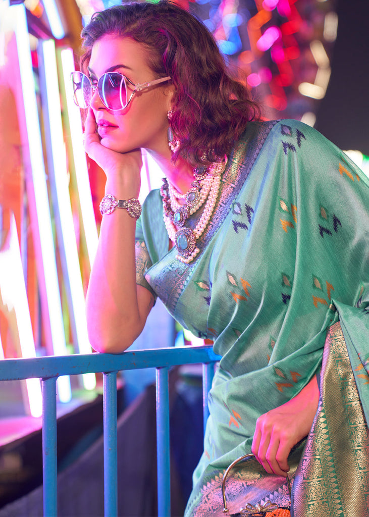 Sky Blue Elegant Handloom Banarasi Silk Blend Saree with Woven Work & Blouse Piece