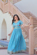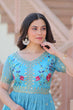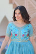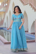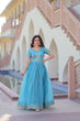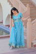 Sky Blue Gold Crush Gown with Multicolor Thread Embroidery & Sequin Zari Work