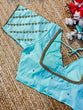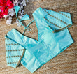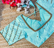 Sky Blue Golden Burberry Silk Blouse with Intricate Handwork