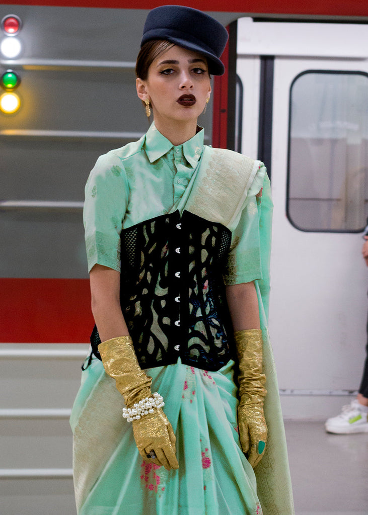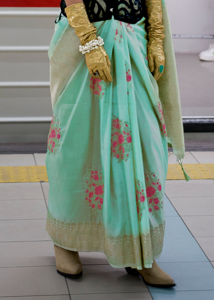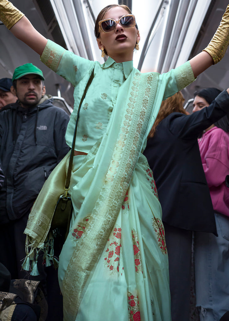Sky Blue Katan Handloom Silk Saree with Blouse Piece