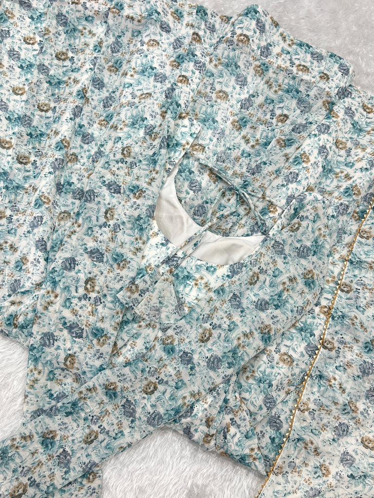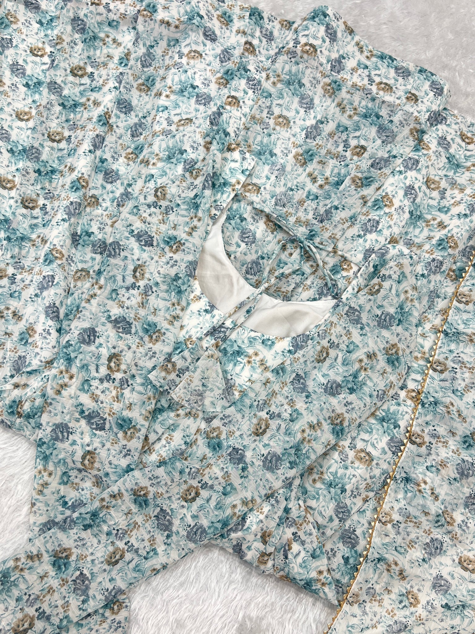 Sky Blue Luxury Chiffon Floral Anarkali Set – Elegant & Breezy for Summer Weddings