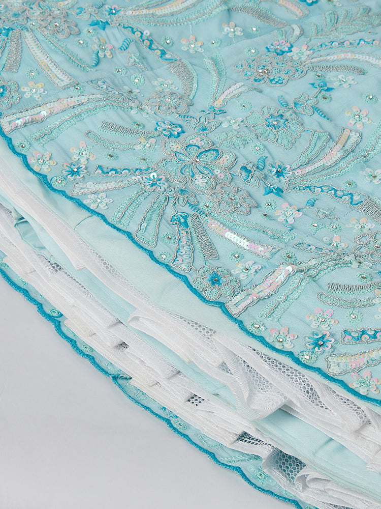 Sky Blue Organza Sequins embroidery Lehenga choli & Dupatta