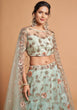 Alluring Sky Blue Thread Embroidery Party Wear Net Lehenga Choli