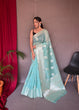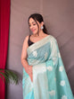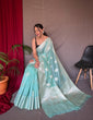 Introducing our stunning Sky Blue Saree, crafted from high-quality cotton and featuring intricate Rose Gold weaves all over. The Rich woven Rose Gold Zari adds a touch of elegance and sophistication to this beautiful saree. The saree is completed with a beautifully designed Pallu that is sure to turn heads. This saree comes paired with a Brocade Weaving Blouse that perfectly complements the saree. The saree length is 5.5m and the blouse length is 0.8m, making it a perfect fit for any occasion, be it a party, wedding or casual event. Make a statement with this gorgeous Sky Blue Saree in Cotton Rose Gold Woven and be the center of attention at any event.