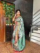 Introducing our stunning Sky Blue Saree in Floral Kalamkari Print, made from pure soft silk. This saree features intricate floral Kalamkari prints all over, complemented by a zari woven border and a rich woven pallu with tassels. The saree comes paired with a contrasting brocade blouse, adding a touch of elegance to your overall look. Perfect for any occasion, whether it be a party, wedding, or festive event. The saree length is 5.5m and the blouse length is 0.8m. Elevate your wardrobe with this beautiful and timeless piece.