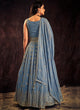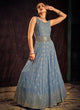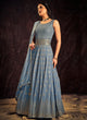 Sky Blue Sequence And Mirror Work Embroidery Anarkali Gown
