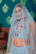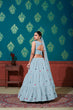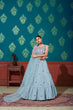 Sky Blue Thread With Sequins Embroidered Cotton Semi Stitched Lehenga