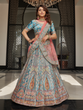 Sky Blue Velvet Semi Stitched Lehenga With Unstitched Blouse