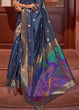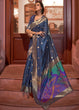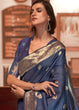Space Blue Woven Chanderi Banarasi Fusion Silk Saree