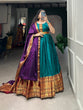 Stunning Teal Traditional Narayanpet Gown with Dupatta & Belt