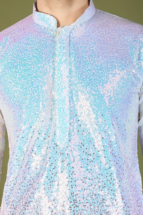 The Highlight of This Kurta is Its Stunning Ombre Pink Shade, Blending Seamlessly From Soft Blush to Deep Pink. This Gradient Effect Gives a Modern Touch to the Classic Design, Making It Perfect for Stylish Pink Men's Kurta.