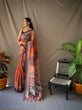 Sunrise Orange Saree in Cotton Kalamkari Printed