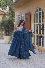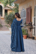 Teal Blue Elegant Embroidered Georgette Gown with Dupatta – Luxe Designer Collection