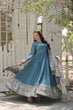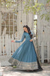 Teal Blue Stunning Faux Georgette Gown with Rich Sequins Embroidery