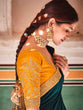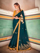 Teal Crepe Silk Embroidered Saree With Unstitched Blouse