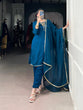 Teal Graceful Vichitra Silk Suit Set with Handwork & Sequins – Lace Border Dupatta, Stitched Top & Bottom