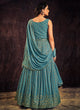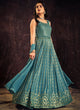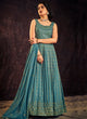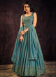 Turquoise Blue Sequence And Mirror Work Embroidery Anarkali Gown