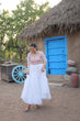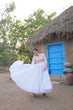 White Elegant Faux Blooming Gown with Kutchi Gamthi Work