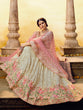 Add light to the celebration called life beaming in this lehenga, choli and dupatta set. Crafted on Georgette, the set is beautified with Thread,Zari,Sequin,Swarovski work.