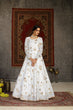 White Foilage Print Taffeta Silk Party Wear Gown Semi Stitched