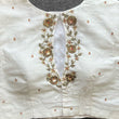 Crafted with meticulous attention to detail, the handwork on this blouse is a testament to the skill and artistry of its creator. The delicate golden threads are intricately woven into the fabric, forming stunning patterns that shimmer and catch the light. The blouse's design is both classic and contemporary, making it versatile enough to pair with a variety of outfits.