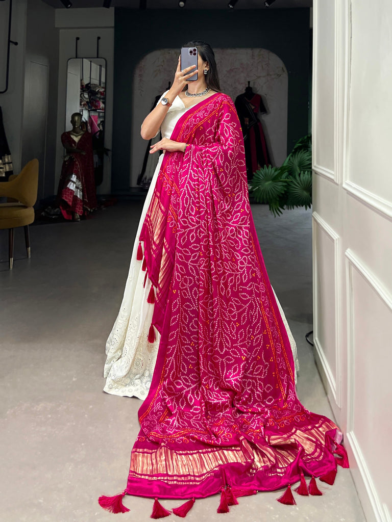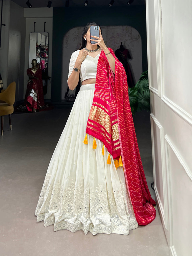 White Timeless Elegance Lucknowi Paper Mirror Work Georgette Lehenga Set