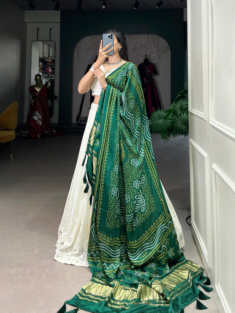 blend of tradition and modernity with this exquisite Lucknowi Paper Mirror Work Lehenga Set. Designed to radiate timeless elegance, this outfit is perfect for weddings, festive occasions, or special events.