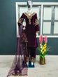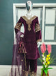 Wine Color Embroidery Work Velvet Palazzo Suit