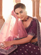 Wine Embroidered Designer LehengaCholi features a crepe blouse with crepe lehenga with soft net dupatta fabrics. Embroidery is completed with Dori , thread, zarkan. This Style is made in India and checked by hand to ensure high quality.