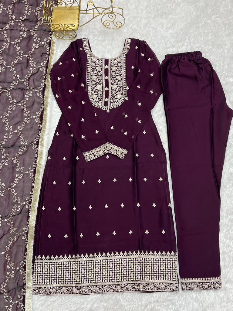 Premium Pure Blooming Rangoli Silk Kurta Set. Designed for elegance and comfort, this straight-fit kurta comes with a beautifully embroidered dupatta and matching trousers – all crafted from luxurious silk fabric. Perfect for festive celebrations, family gatherings, or special occasions.