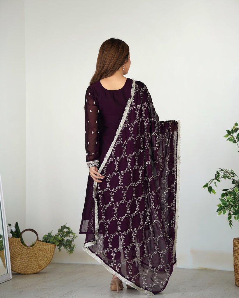 Wine Festival Special Pure Blooming Rangoli Silk Kurta Set with Dupatta – Elegant Embroidery & Lace Work
