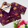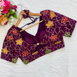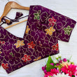 Wine Golden Sequined Blouse with Colorful Embroidery in Georgette Silk