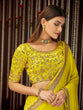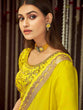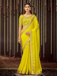 Yellow Chinon Silk Embroidered Saree With Unstitched Blouse