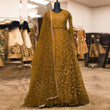 A yellow gown with heavy embroidery and stone work is a formal dress that is decorated with intricate needlework and sparkling embellishments. The gown is yellow in color and features heavy embroidery, which involves needlework on the fabric to create elaborate designs and patterns. The gown is also adorned with stone work, which refers to the use of small, sparkling stones or beads to form decorative designs. The combination of the heavy embroidery and stone work creates a stunning and eye-catching outfit that is suitable for formal events or special occasions.