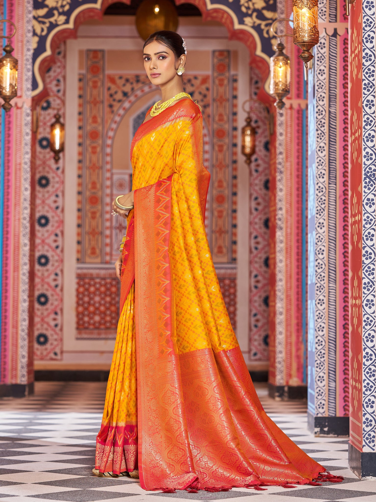 Yellow Elegant Banarasi Tissue Silk Saree with Zari Woven Design